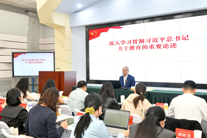9月18日,校长王占仁以《深入学习贯彻习近平总书记关于教育的重要论述》为题为我校2025年新入职教师作首场专题辅导报告。全体新入职参训教师和人事处相关负责人现场聆听报告。